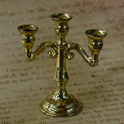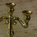 Decorative candelabrum with three(3) branches. Metal with polished gold finish. Age is unknown, no stamps or hallmarks.