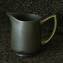 Low fat pitcher with thin spout, in dark grey matte finish with brass handle. Can be used as water/milk pitcher or a vase.