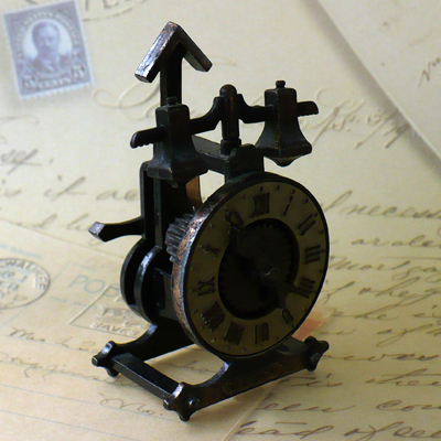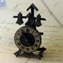 cogs connected to one hand. Age is unknown, made in Spain and is a vintage pencil sharpener.