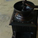 Large rustic coffee grinder with a functional handle and a drawer that catches the grinded coffee (the grinder itself is not functional).