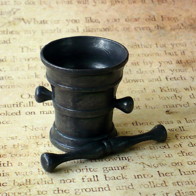 Measurements mortar: 3.8cm high | 3.4cm diameter (widest point) | Pestle: 5.5cm long