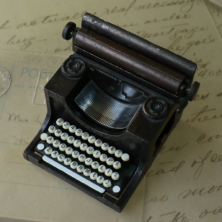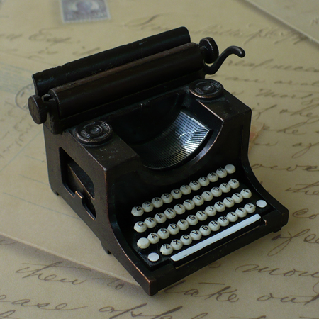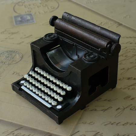 Old fashioned typewriter. Die-cast, with tiny plastic keys, functional feed roller and fine details for a more realistic look.