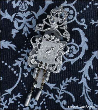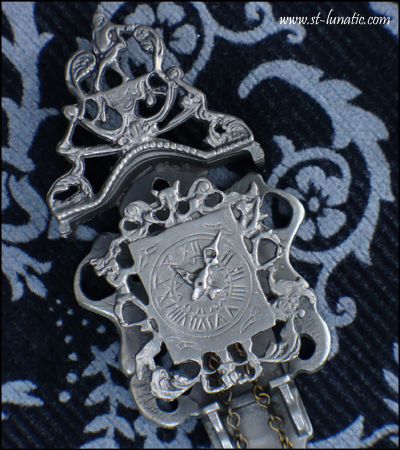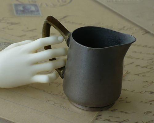 Unknown age, no stamps or hallmarks, metal is probably tin. Modeled by FeePle (70cm, SD sized hand).