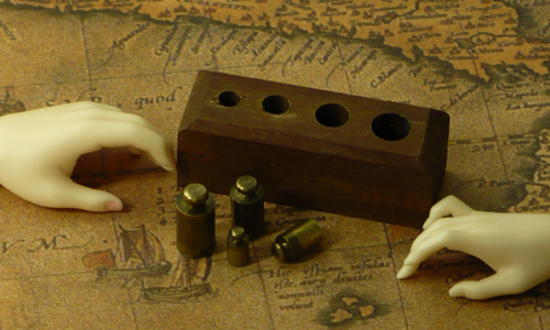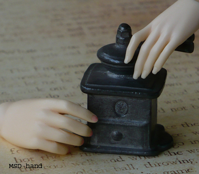 Age is unknown, die-cast, made in Spain and is a vintage pencil sharpener. Modeled by FeePle (70cm, SD sized hand) and Dollshe (70cm).