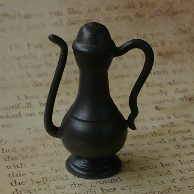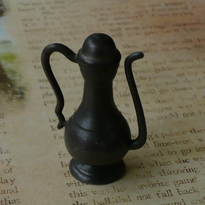 Dark solid pitcher with a long thin spout and decorative thin handle. The pitcher is not functional and can't hold any liquid.