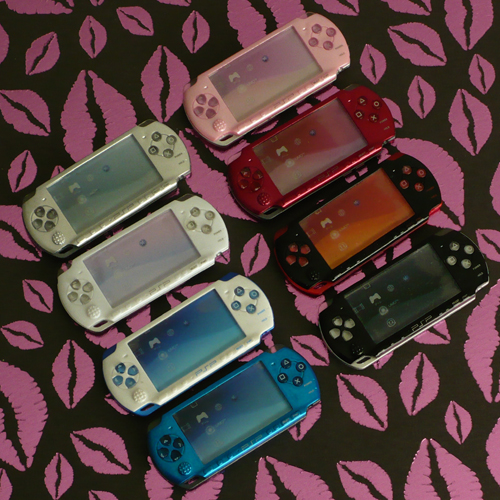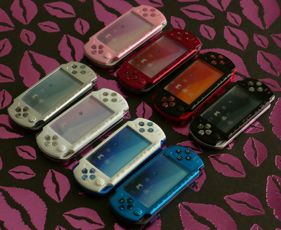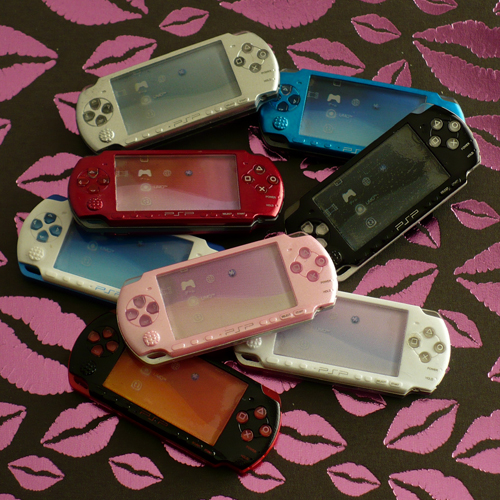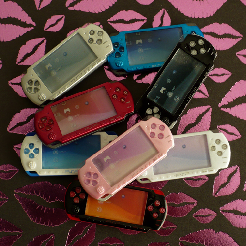 Miniature playstation portable (psp) in eight flashy colors. Extremely fine details and prints, each psp has a standard screen showing.