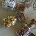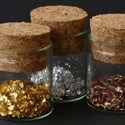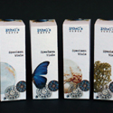 A set of four(4) different specimen vials. The set includes Peruvian Morpho butterflies, Davy Jones locker sand, Lappish moss,