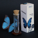 Tiny glass vial with two blue Morpho butterflies specimen inside. Comes with a removable square wooden stand and a storage packaging box specially