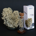 Tiny glass vial with Finnish moss specimen inside. Comes with a removable square wooden stand and a storage packaging box specially