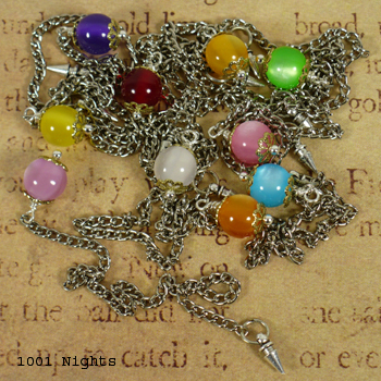 Available in a variety of styles and coordinating bead colours; particular colour within a style can't be selected and will be picked at random. Custom coordinating beads and chain sizes available on request.