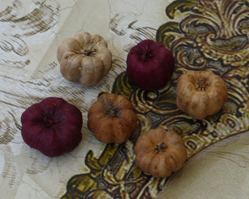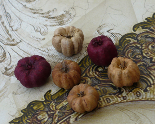 Available in burgundy, tan and color mix. Bag contains 5 pumpkins.