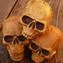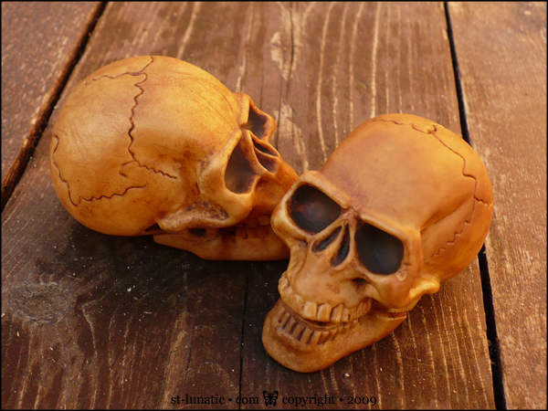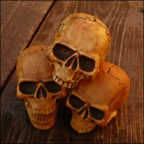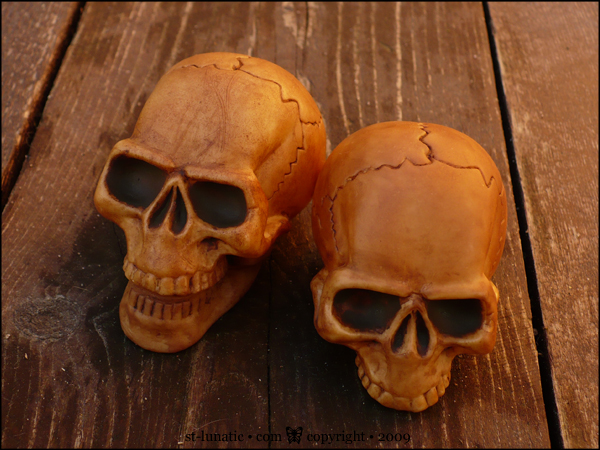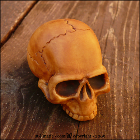 Small skull, handpainted and stained by me to look realistic & old. With a removable lower jaw for more possibilities