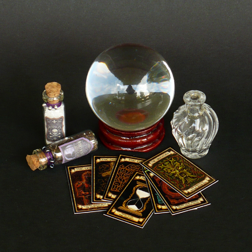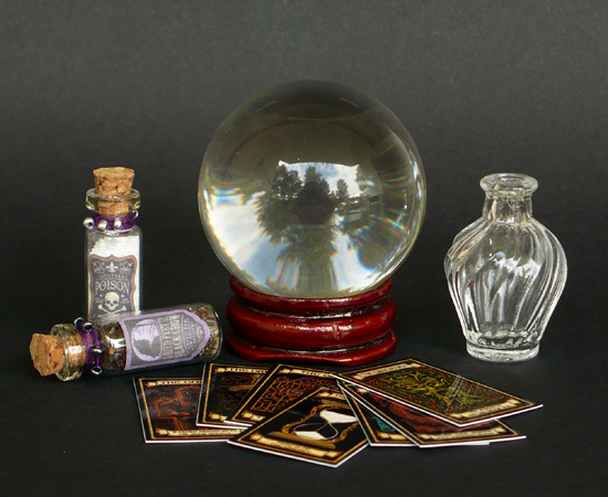 Clear crystal ball, used for divination or scrying. THE most important tool for a fortune teller, aiding in the performance of clairvoyance.