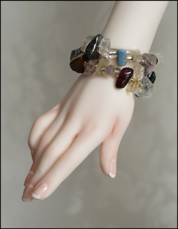 Bracelets are stretchy for easy fit. Choker is not stretchable, has a magnetic clasp (the length can't be adjusted).