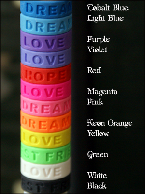 Soft silicone rubber wristband bracelets with inspirational words.
