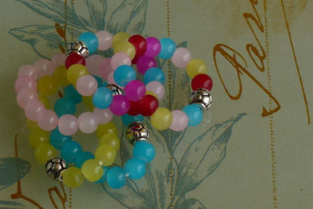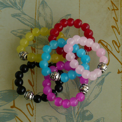 Candy colored stretchy bracelets with quality round glass beads and metal detail with turtle pattern. Perfect for stacking but also look great by