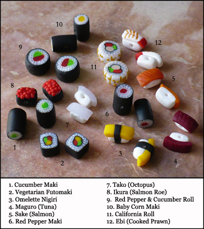 Measurements (for E.I.D): 7cm long | Sushi Charm: 0.9cm longest sushi