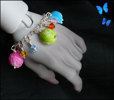 Amazingly detailed and realistic regardless of it's size, the bracelet look natural on doll's wrists, and there is space left to add extra dangles or your own charms. Modeled by E.I.D Luna.