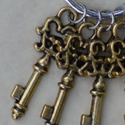 Miniature key ring in castle/jailer design. Four of the five individual skeleton keys is unique in length and design,