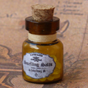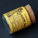 Glass bottle with a yellow vintage styled label for epsom salt (medical salt).
