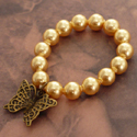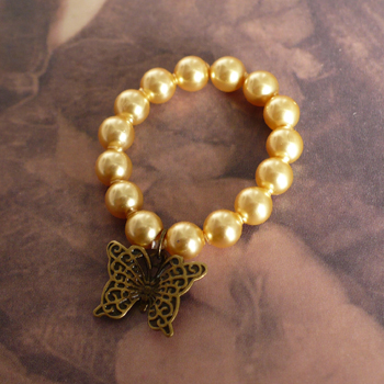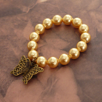 Elegant bracelet with Swarovski pearls and a tiny whimsical bronze butterfly charm. The bracelet is stretchy. Please include the pearl color in item description when placing