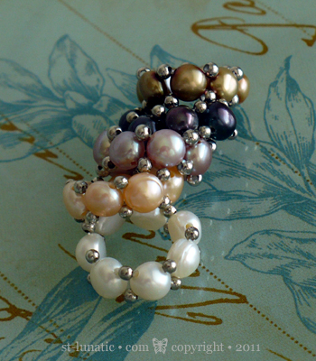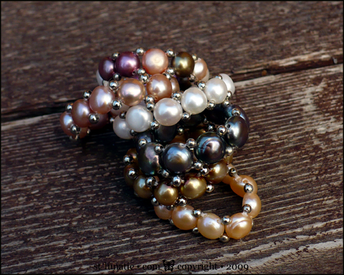 Petite version of resonance bracelets, with cultivated freshwater button pearls in combination with silver metal space beads.