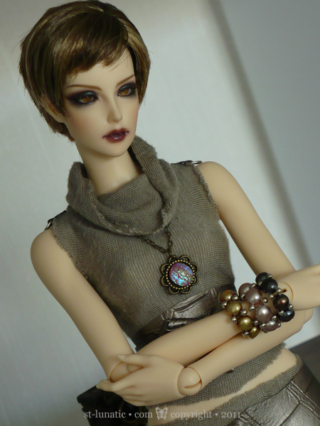 pale blue beads and will replace it with a Swarovski crystal. Modeled by Supia.