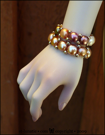 the order. Pictured bracelet is made with gold toned pearls.