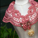 Lace embroidery wrap shawl, classic flower motif, triangle shape with rounded edges. In salmon pink tone, true color better shown on pictures with white background.